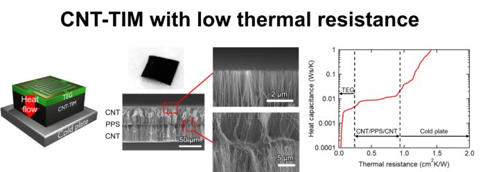今回作製したCNT-TIMは、半導体パワーデバイスなどの高エネルギー密度デバイスを効果的に冷却するための高性能TIMとなると期待されます。