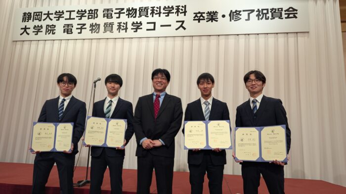 卒業式 2026年3月17日 2026年3月21日 M2の奥村友貴君、渡邉瑛介君、渡辺倭君、B4の中野瑞貴君が卒業しました。皆さん、本当によく頑張ってくれました。これからの益々の活躍を期待しています。 第73回応用物理学会春季学術講演